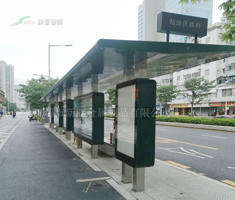 主体材料配置:公交站亭主体材料材料不锈钢,镀锌板,铝型材等精密加工成型