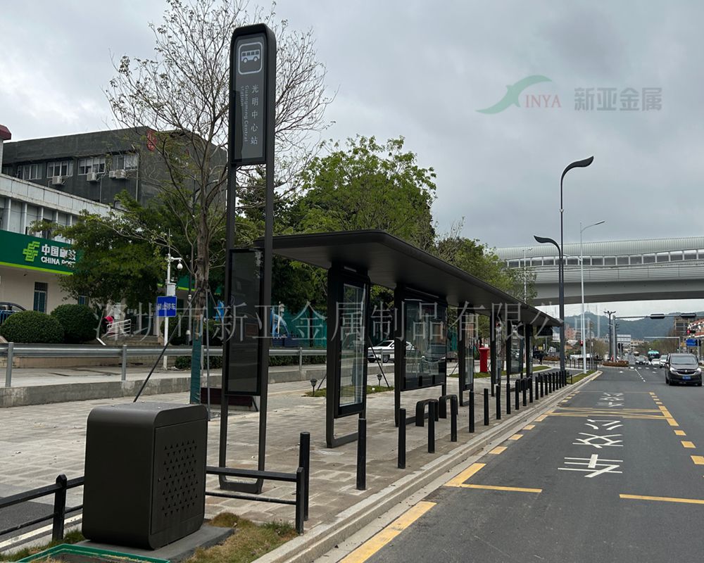 主体材料配置:公交站亭主体材料材料不锈钢,镀锌板,铝型材等精密加工成型